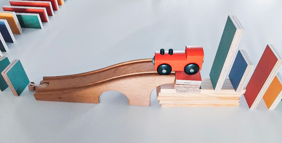 Assemblez dominos, voitures, bascules rampes, balles et modules variés pour créer un parcours spectaculaire !