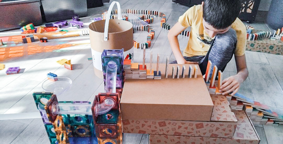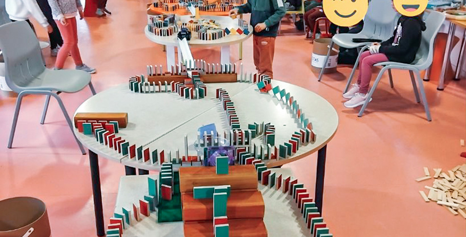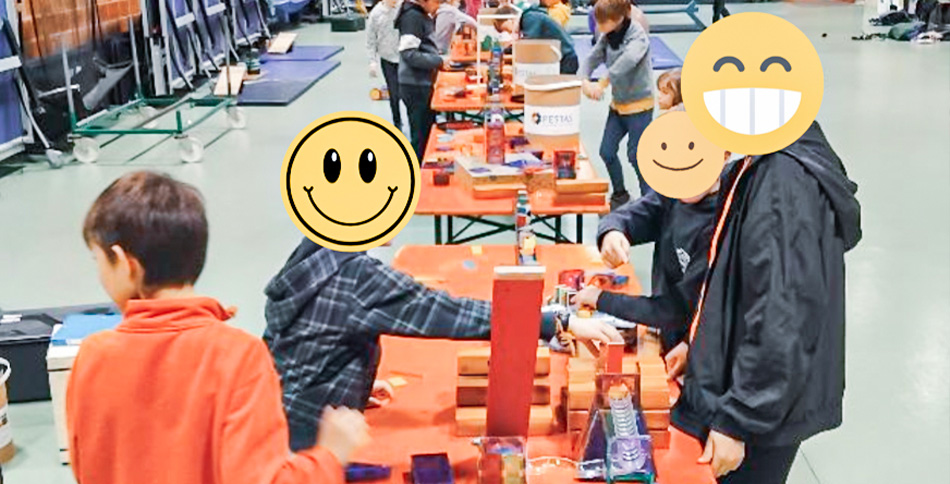 1/ Chaque équipe dispose du même matériel : 500 Dominos / circuit de bille / connetix / kapla / lego/ carton …