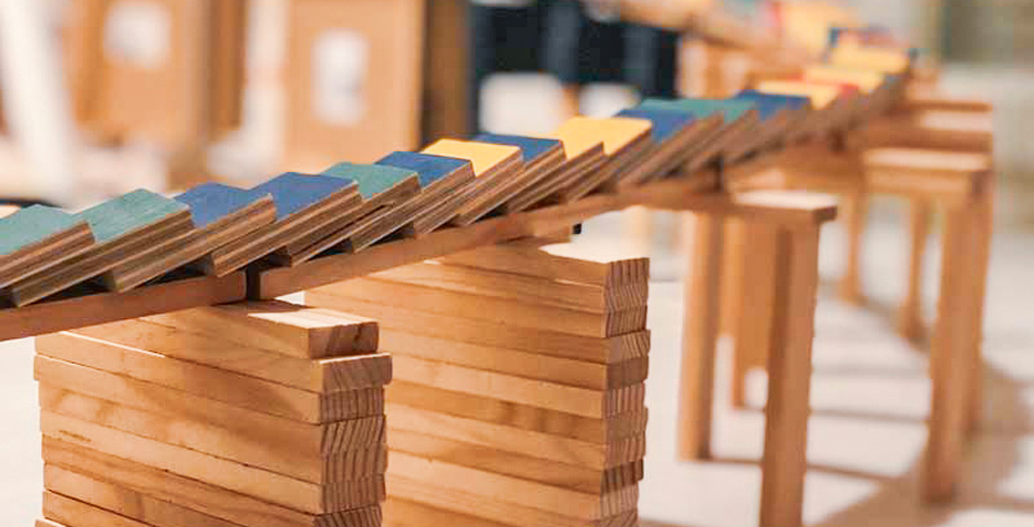 Le principe est simple : construire ensemble une immense réaction en chaîne, à la manière des célèbres machines de Rube Goldberg. Balle qui roule, dominos qui tombent, levier qui déclenche une cloche… chaque étape provoque la suivante dans une succession d’effets inattendus et amusants !